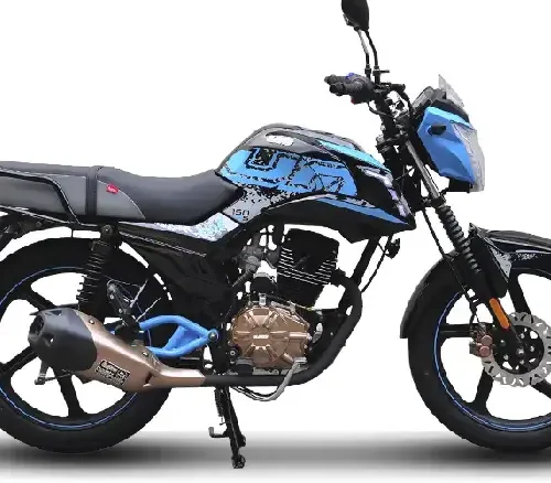 Motor de 125cc con motor de alto torque, 10.5 CV, enfriado por aire y 5 velocidades. Incluye parrilla de carga reforzada, rines de aleación (aspa) de alta resistencia y protector de motor. Estilo funcional, duradero y diseñado para el ahorro máximo.