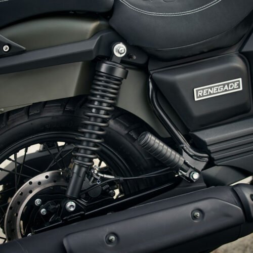 La Renegade Commando E5 es mucho más que una moto: es una declaración de carácter. Con su diseño que fusiona el estilo clásico americano con un look militar inconfundible, está hecha para riders que buscan una moto con presencia, historia y actitud.